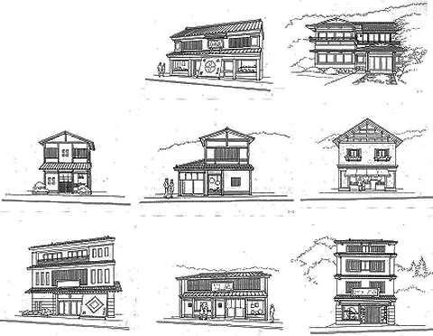 ■ 現存する和風の建築を参考にしましょう!●【考え方】 和風とは、和の部分が取り込まれていること、和の感じ取れる建築物という意味です。 今も日光東町に残っている和風の建築物を参考にしながら、全体として調和した建築物が並ぶ街並みにしていきましょう。 ●【留意事項】 ・これから建て替える建築物は、「例示された和風の建築物に似せる」という発想ではなく、 「調和するように配慮する」という姿勢が必要です。 ・日光東町の和風のイメージは、下記資料を参考にする。 ●【参考】 ・日光東町に立地する和風の建築物で参考になるものを抽出したものが下図の建築物です。 ![]() |