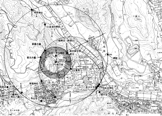 東照宮を中心とした結界は、南を男神新宮、北西を女神滝尾、東南を若宮本宮の二等辺三角形で形成されている。